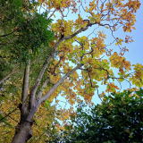 | 2025年11月2日(日) 今年は本当に異常です。今頃クスノキの落ち葉掃きをするなんてはじめてのことです。四季がはっきりしなくなったのですね。知人が「キンモクセイの香りはいいですね」と言われたのですが、我が家のキンモクセイはまだ咲いていないと思いながらふと見上げましたらクスノキに光を遮られて太陽を求め上へ上へと伸びて行き、上の方でほんの少し咲いていました。 子どもの頃はキンモクセイの香りがするとなぜかもの悲しい気持ちになったものでした。 ![]() |